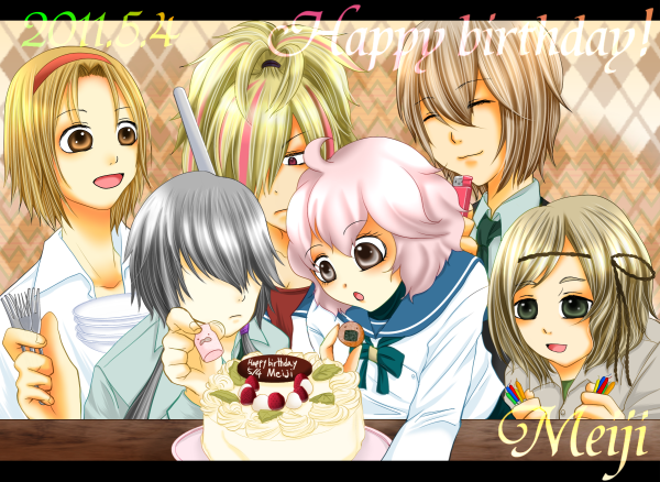 めいじ家のみんなが保護者のめいたんのためにケーキを用意してくれたよ!
